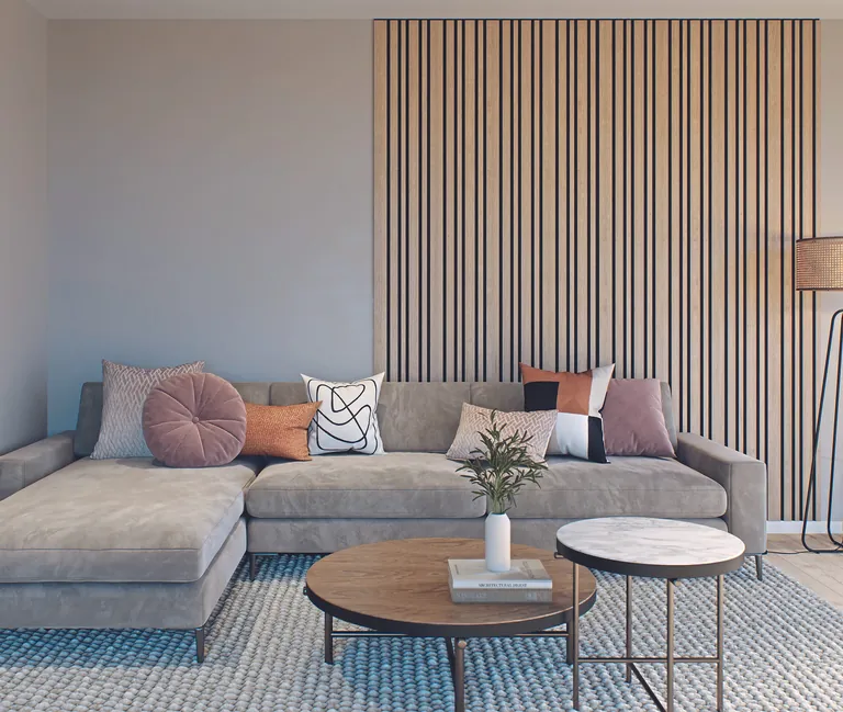 Eine Trittschalldämmunterlage ist nach Abschluss der Verlegearbeiten unsichtbar. Der Nutzer weiß unter Umständen gar nicht, dass sie verbaut wurde, bemerkt aber zumindest unterbewusst ihre Wirkung. Ein Paneel an der Wand dagegen darf nicht nur sichtbar sein, es soll auch im Raum wirken, akustisch und optisch.
