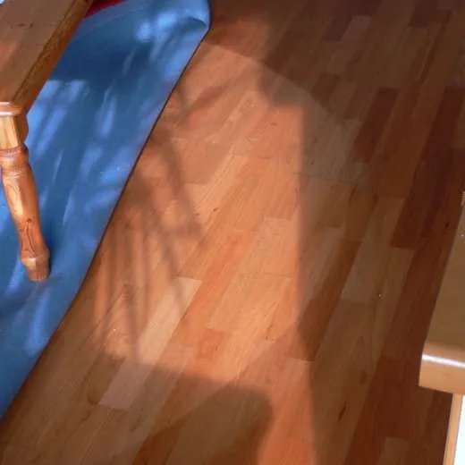 So sah zwar die Kirsche, bisher dem Blick durch einen darüber gelegten Perser entzogen, noch aus wie am ersten Tag. Allein, die nebendran der Sonneneinstrahlung durch das Dachfenster unmittelbar ausgesetzte Fußbodenfläche war derart nachgedunkelt, dass das Holz eine an Mahagoni erinnernde Färbung angenommen hatte. Man kann sich vorstellen, dass die entlang der bisherigen Auflagefläche des Teppichs verlaufende Trennlinie die Hausherrin nicht entzückte.