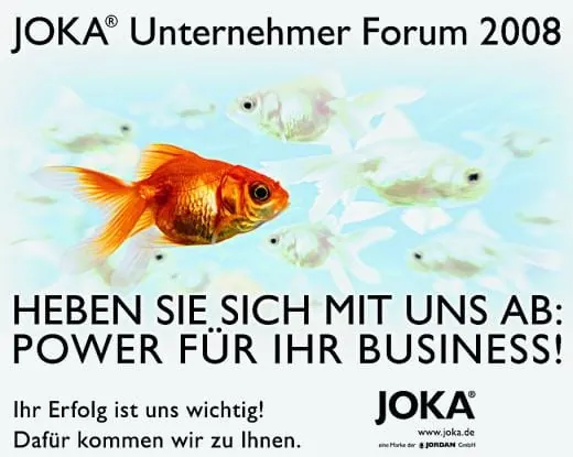 An deren Bedürfnissen orientiert sich das Joka-Unternehmer-Forum 2008 des Kasseler Unternehmens. Unter dem Motto „Heben Sie sich mit uns ab – Power für Ihr Business“ werden aktuelle Themen und neue Anforderungen aus dem Markt aufgegriffen und zukünftige Erfolgsfaktoren diskutiert. Die Teilnehmer erwartet nach Unternehmensangaben ein interessantes und vielseitiges Programm, eine Mischung aus hochkarätigen Referenten, praxisnahen Workshops und lebendigem Meinungsaustausch mit Kollegen.