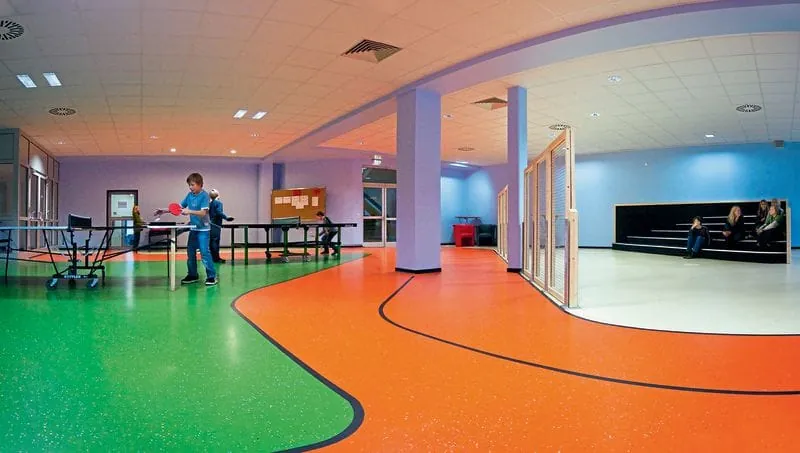 Aber auch für die Handwerker bietet das System Vorteile, da sie sich mit dem Sanierungskonzept von der Masse abheben und Zusatzumsätze erzielen können. Das bestätigt auch Wuttke. „Zum einen kann sich der Handwerker breiter aufstellen, zum anderen bietet das System zahlreiche gestalterische Individualisierungsmöglichkeiten, wie die Chipeinstreuung oder die Spachteltechnik für eine Marmor-Optik“, sagt er. Gerade im Kindergarten sind auf diese Weise kindgerechte Motive möglich, ohne Intarsien schneiden zu müssen. Auch das Aufbringen eines Logos oder Designs per Transfertechnik ist machbar.