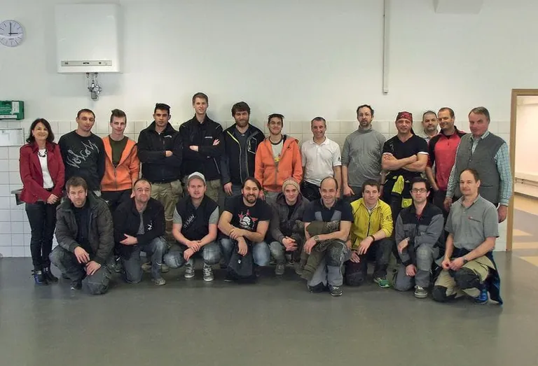 Zum Intensivkurs der Bodenleger, organisiert von der Landesinnung Tirol, kamen 22 Teilnehmer. Sie erneuerten den Boden in einem Klassenzimmer in der Landes-Berufsschule für „Garten, Raum und Mode“, in der auch Bodenleger unterrichtet werden.