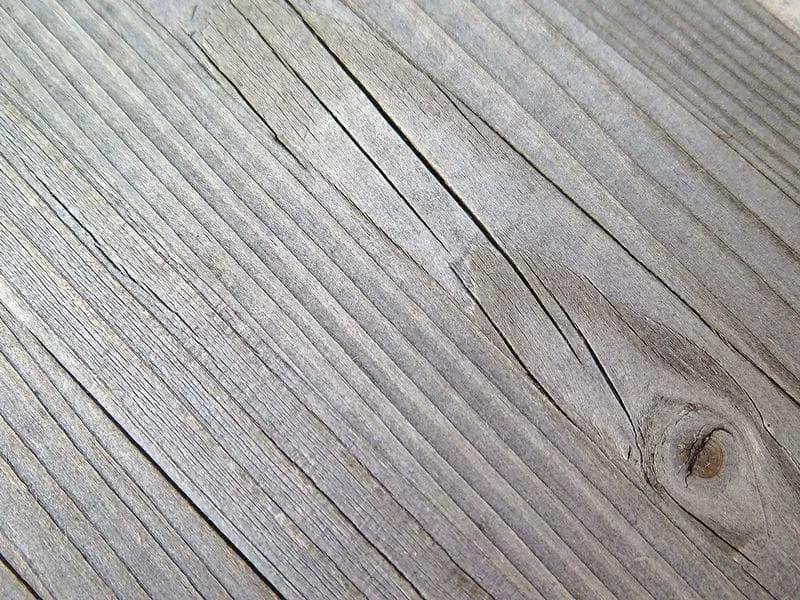 Dem Wetter direkt ausgesetzte Flächenbereiche wiesen Holzfaserablösungenauf. Die filzähnlichen Trennungen lagen jedoch nicht flächendeckend vor. Nach dem Abwaschenoder Abbürsten der Fasern kam das Holz darunter hell zum Vorschein.