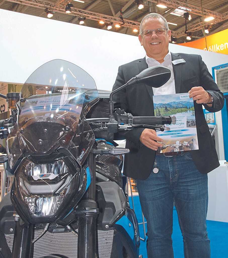 Profilehersteller Küberit hatte ein Motorrad als Eyecatcher am Stand. „Wir machen im Sommer eine Motorradtour mit Kunden und solche, die es werden wollen“, erklärte Geschäftsführer Udo Ulbrich. Um darauf aufmerksam zu machen, hat Ulbrich kurzerhand seine eigene Maschine „einmal unter den Dampfstrahler gehalten“ und mitgebracht. Bei den Produkten gab es zum Beispiel das Profil 279 FW in neuen Farben zu sehen. - © bwd