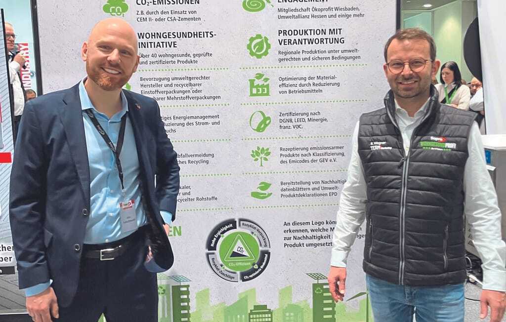 Jens Schuchmann (links, neben Marketingleiter Robert Wagner) wird neuer Geschäftsführer der Sopro Bauchemie und übernimmt in dieser Funktion die Aufgaben von Michael Hecker, der in Kürze in den Ruhestand wechselt. - © bwd