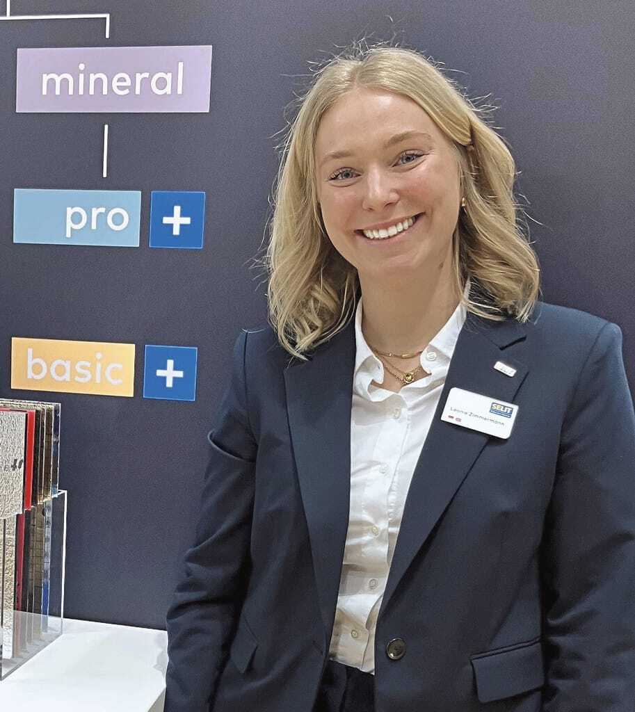 Die Selit Dämmtechnik stellte zum ersten Mal auf der BAU aus. Das Unternehmen präsentierte dabei sein neues „easy Konzept“, das bei der Wahl der richtigen Verlegeunterlage eine klare Orientierung bietet. Im Bild Leonie Zimmermann (Marketing). - © bwd