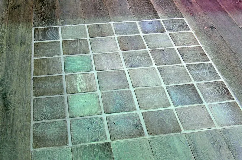 2 Eine Anleihe bei den Fliesenherstellern: dekorative Holzelemente in einem Dielenboden.