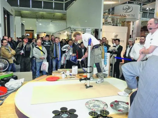 © MayrhoferDie Bodenbelagbranche zog die Besucher mit Verlegevorführungen an die Messe stände.