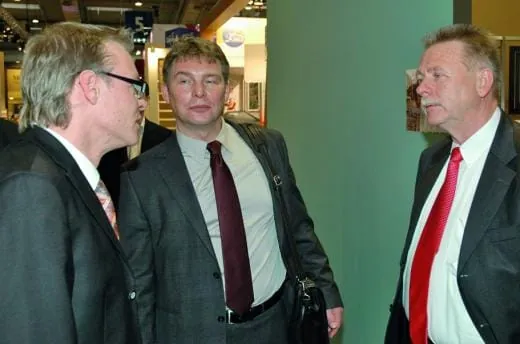 © Heinze10 Informationsaustausch zwischen zwei Standbesuchen. Im Bild (v.li.n.re.): Michael Lenz (Gründorf), Stephan Weichmann und Manfred Birkenstock (Copa).