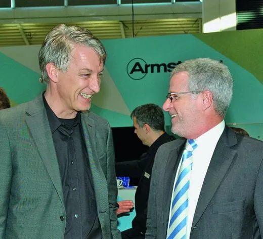 © Heinze4 Armstrongvertriebsdirektor Uwe Leupold (li.) freut sich über den Standbesuch von Joerg Grieder, Netto Einkaufsgruppe. -
