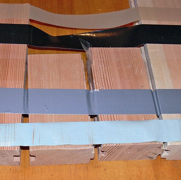 1 Mit verschiedensten Klebebändern und an unterschiedlichen Jahrringlagen der Dielen wurden orientierende Ausreißversuche unternommen.
