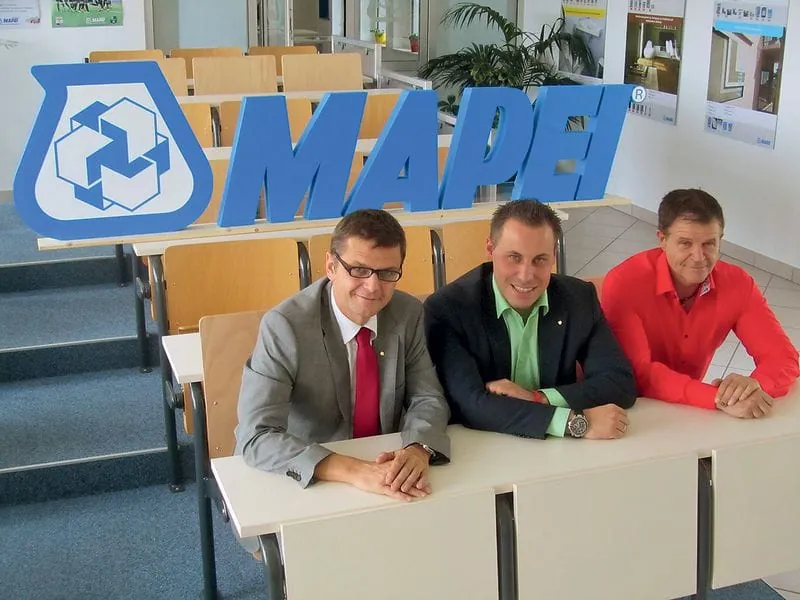 Links Die Menschen hinter Mapei Österreich (v. l.): Geschäftsführer Mag. Andreas Wolf mit seinem Verkaufsleiter Resiliente Paul Solczkiewicz und dem Produktmanager Bodenbeläge und Parkett Ing. Reinhold Stinzl.