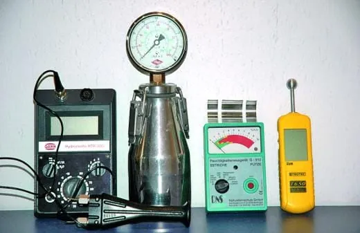 Fremdhandwerker wie Fliesenleger, Maler sowie Heizungsbauer tragen in den Bau immer wieder Feuchtigkeit ein, so dass vermeintlich und nach dem Augenschein trockene Flächen durchaus zu viel Feuchtigkeit enthalten können. Umso wichtiger ist bei der CM-Messung die korrekte Vorgehensweise, wie sie gemeinsam die Verbände des bodenlegenden Handwerks erarbeitet haben: Ist kein Prüfgerät für die zerstörungsfreie, schnelle Vorprüfung des Unterbodens vorhanden, sollten ein bis zwei CM-Messungen in Objekten bis 100 Quadratmeter durchgeführt werden; eine Messung je Wohnung im Wohnungsbau. In größeren Objekten sollte alle 200 Quadratmeter gemessen werden. Bei Calciumsulfatestrichen sollte die Einwaage 100, bei Zement- und Magnesiaestrichen jeweils 50 Gramm betragen. Parkettleger entnehmen das Prüfgut für ihre Messungen aus dem unteren Drittel des Estrichs. Alle anderen nehmen das Prüfgut aus dem gesamten Querschnitt. Referenzmessungen belegen, dass bei der Prüfgutentnahme aus dem unteren Drittel der CM-Wert in der Tat etwas höher liegt als bei der Messung über den gesamten Querschnitt. Wichtig: Die beschriebene Vorgehensweise gilt nicht bei Schnellestrichen oder Estrichen, die mit Zusatzstoffen versehen sind. Der Prüfablauf ist in diesen Fällen beim Estrichhersteller zu erfragen.