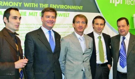 © Pitt14 Dr. Alessandro Galbiati, Dr. Paolo Lechner, Marco Cainero, Enrico Goldoni und Dr. Armando Papini, stellten ihre Zusammenarbeit für einen silanbasierten Parkettkleber vor, der kein Methanol mehr freisetzen soll.