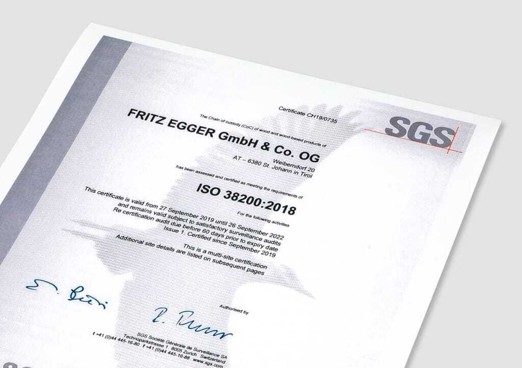 Als einer der ersten Holzwerkstoffhersteller weltweit erfüllt die Egger-Gruppe die hohen Anforderungen des neuen Standards nach ISO 38200. Damit steht ein weltweit gültiger, international anerkannter Standard für die Produktkette von Holz und Holzprodukten zur Verfügung, teilt das Unternehmen mit. Geregelt wird die Weitergabe von Informationen entlang der Lieferkette: vom Holzeinschlag bis zur Lieferung zum Endkunden.