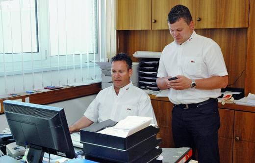 Wie in einem typischen Handwerksbetrieb sieht es in der Bauhandwerksgesellschaft (BHG) Trier nicht aus. Man fühlt sich eher an ein Unternehmen erinnert. Es gibt ein großes Konferenzzimmer, auf den Schreibtischen türmen sich Akten, das Unternehmen verfügt über zahlreiche Fahrzeuge und vor dem Gebäude steht ein großes Banner mit Logo und Slogan der BHG. Geschäftsführer und Inhaber Stefan Zang sowie sein Teilhaber Holger Konz sind mit Blackberries ausgestattet, um schnelle und unkompliziert kommunizieren zu können. Dafür, dass hier ein erfolgreiches Handwerksunternehmen seinen Sitz haben soll, geht es auf den Fluren recht ruhig zu. „Die sind alle auf der Baustelle“, erklärt Konz.