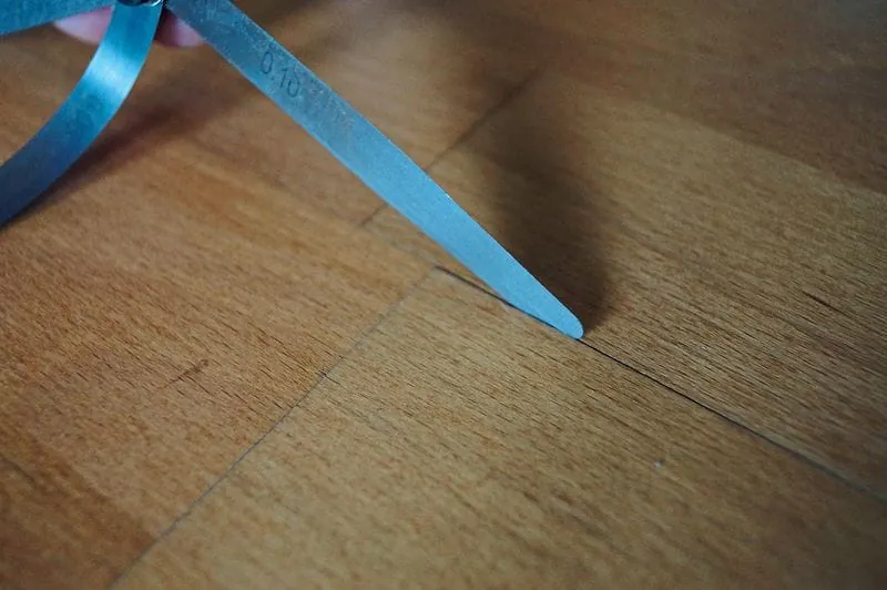 Zunächst misst der Sachverständige Raumklima und Holzfeuchte. Das Raumklima zeigt normale Werte und auch die Bausubstanz ist unauffällig. Die Holzfeuchte ist nur mit Vorbehalt zu messen, weil die elektrischen Messverfahren bei Mehrschichtparkett nicht zuverlässig sind und je nach Messgerät und Elektrodeneinschlag Mate­rial­mischungen oder einen Mix von Holz- und Klebstoff messen.