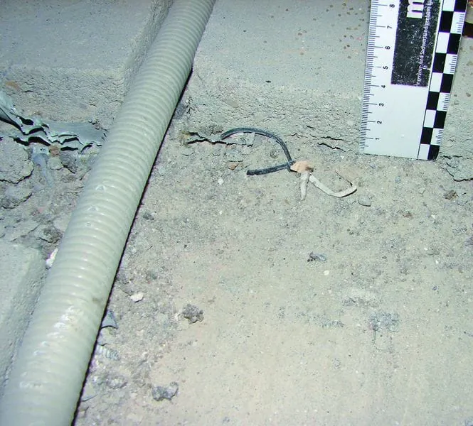Leerrohre waren auf der Rohbetondecke befestigt worden. Wegen der geringen Estrichdicke war eine Rohrüberdeckung unmöglich.