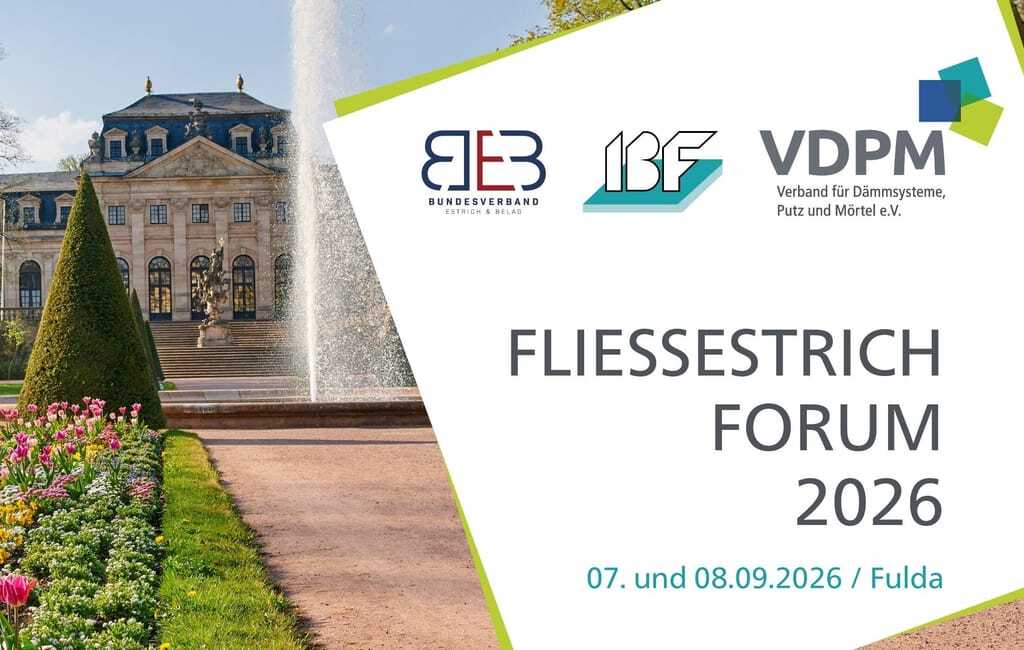 Der Verband für Dämmsysteme, Putz und Mörtel (VDPM), das Institut für Baustoffprüfung und Fußbodenforschung (IBF) und der Bundesverband Estrich und Belag (BEB) laden am 7. und 8. September zum neunten Fliessestrichform nach Fulda ein.