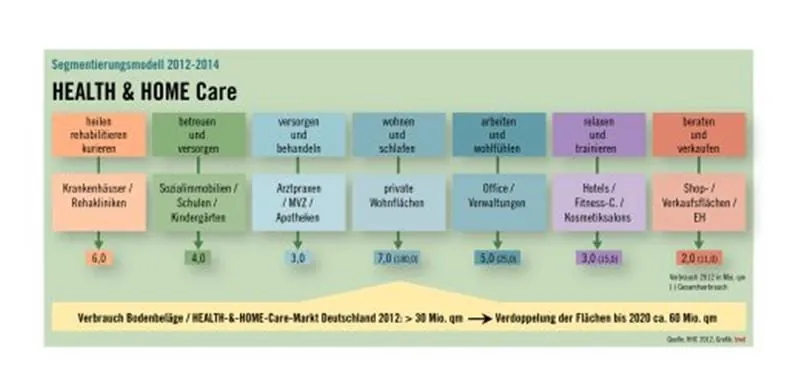 Bis 2020 werden sich die Flächen im Gesundheitsmarkt verdoppeln. Gute Nachrichten für das bodenlegende und raumausstattende Handwerk, denn damit verdoppelt sich auch der Verbrauch an Bodenbelägen. Höchste Zeit, sich mit dem Segment Health & Care näher zu befassen.