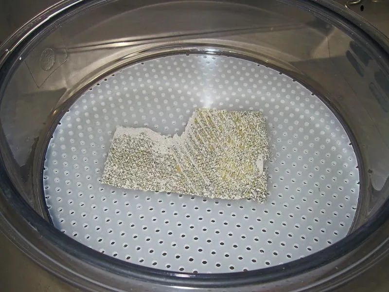 Um weitere Einflussfaktoren, beispielsweise die Raumluft, auszuschließen, musste der Gutachter vor Ort die Spachtelmasse inklusive des darunter befindlichen Klebstoffs für eine spätere Geruchsüberprüfung im Labor abschaben. Darüber hinaus entnahm er auch eine Teppichbodenprobe aus dem noch nicht verlegten Restmaterial, welches zwischenzeitlich im Keller eingelagert worden war. Das entsprechende Probenmaterial schweißte der Sachverständige mit Hilfe eines Vakuumisiergerätes in Aluminiumpapier und mit Folie ein.
