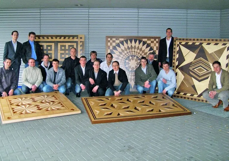 Der Lehrgang war wieder in Theorie und Praxis aufgeteilt. Teil I des Meisterkurses umfasste 80 Stunden für die praktische Vorbereitung. Dabei stand die Handhabung aller Maschinen und Werkzeuge sowie die Herstellung von Parketttafeln im Vordergrund. Darüber hinaus wurden die Kursteilnehmer über die Anforderungen an die Arbeitsproben unterrichtet. Sie mussten eine Parketttafel aus Stabparkett und zwei Rohfriesen mit Hobel und Handsäge anfertigen, ein PVC-Muster inklusive einer Treppenkante einbauen sowie unterschiedliche Leisten anbringen.