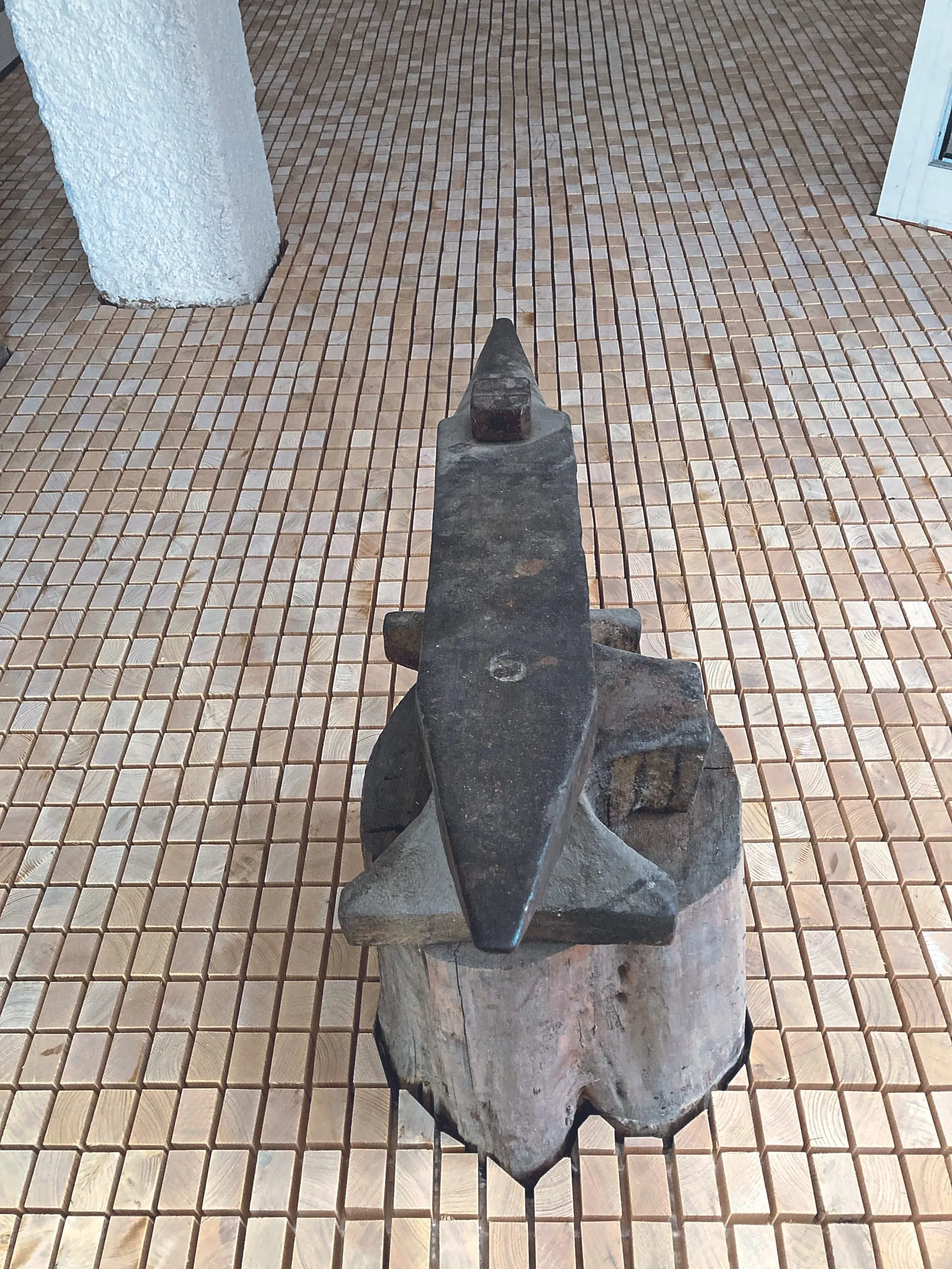 Anschließend konnte mit der Verlegung der über 13.500 einzelnen Klötze begonnen werden. Diese wurden mit einem HPK-Klebstoff einzeln und Reihe für Reihe nacheinander und genau nach dem historischen Vorbild verlegt. Anpassarbeiten an das Schmiedefeuer und den Amboss wurden originalgetreu erledigt. Nach der Trocknung des Klebstoffs (14 Tage) behandelten die Experten die einzelnen Klötze zweimal mit Eukula Oil 1 FS, um eine Schmutz abweisende und beständige Oberfläche zu erhalten. Als letzten Schritt wurden die Fugen mit einem Korkgranulat 1-2 mm ausgekehrt. Dieses Material wurde gewählt, um Spannungen zu reduzieren, die sich ergeben, wenn sich das Holzpflaster infolge der raumklimatischen Schwankungen in den Sommer- und Wintermonaten bewegt.