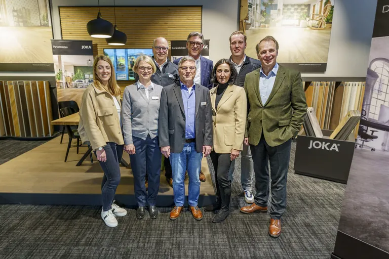 Holzhandel Kretz gehört zu den führenden Anbietern von Türen, Schnittholz, Holzwerkstoffen, Holzbau-Produkten und Bodenbelägen im Lahn-Dill-Kreis. Während die bisherigen Sortimente wie Schnittholz und Hobelware erfolgreich weitergeführt werden, wurde der Jordan-Standort in Dillenburg mit einem neuen JOKA-Showroom, Büro- und Seminarräumen, einem Abhollager für Bodenbeläge sowie neuen Sortimenten umfangreich erweitert. Nun wurde die frisch renovierte und umgebaute Niederlassung am vergangenen Freitag mit den Kunden aus der Region und unter Anwesenheit prominenter Gäste feierlich eröffnet.