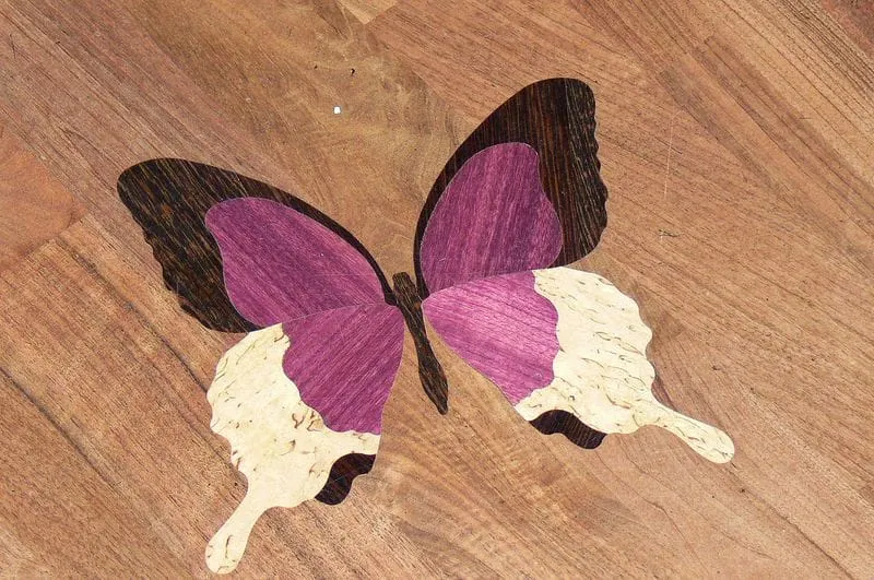 4 Kunstvolle Einlegearbeiten auf dem Boden mit Amaranth.