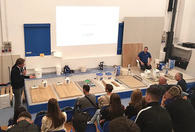 Die Schulung umfasste zahlreiche praktische Vorführungen, einen Besuch in den Forschungs- und Entwicklungslaboren sowie im Werk. Die Mapei Gruppe verfügt über 96 Tochtergesellschaften mit 93 Produktionsstätten auf allen fünf Kontinenten und ist einer der führenden Hersteller von Kleb- und Ergänzungsstoffen für die Installation von Böden und Wandverkleidungen aller Art.