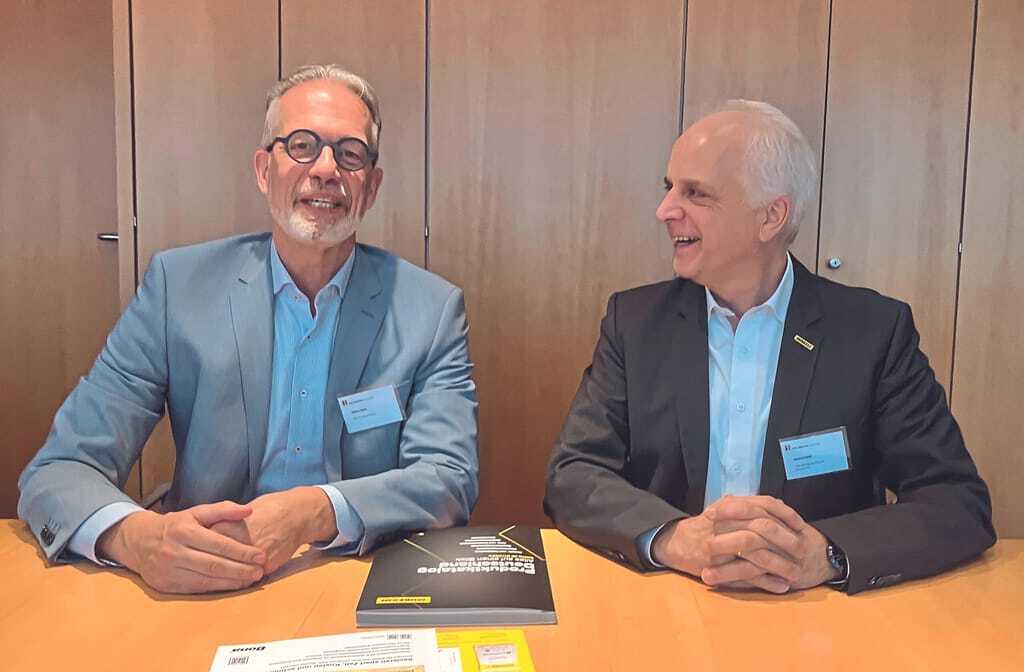 Murexin-Geschäftsführer Wolfgang Hormuth (rechts) und Gesamtverkaufsleiter Thomas Prechtl im Gespräch mit bwd. - © Heinze