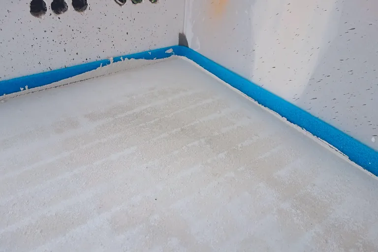 Sinterschicht auf einem Calciumsulfatfließestrich.