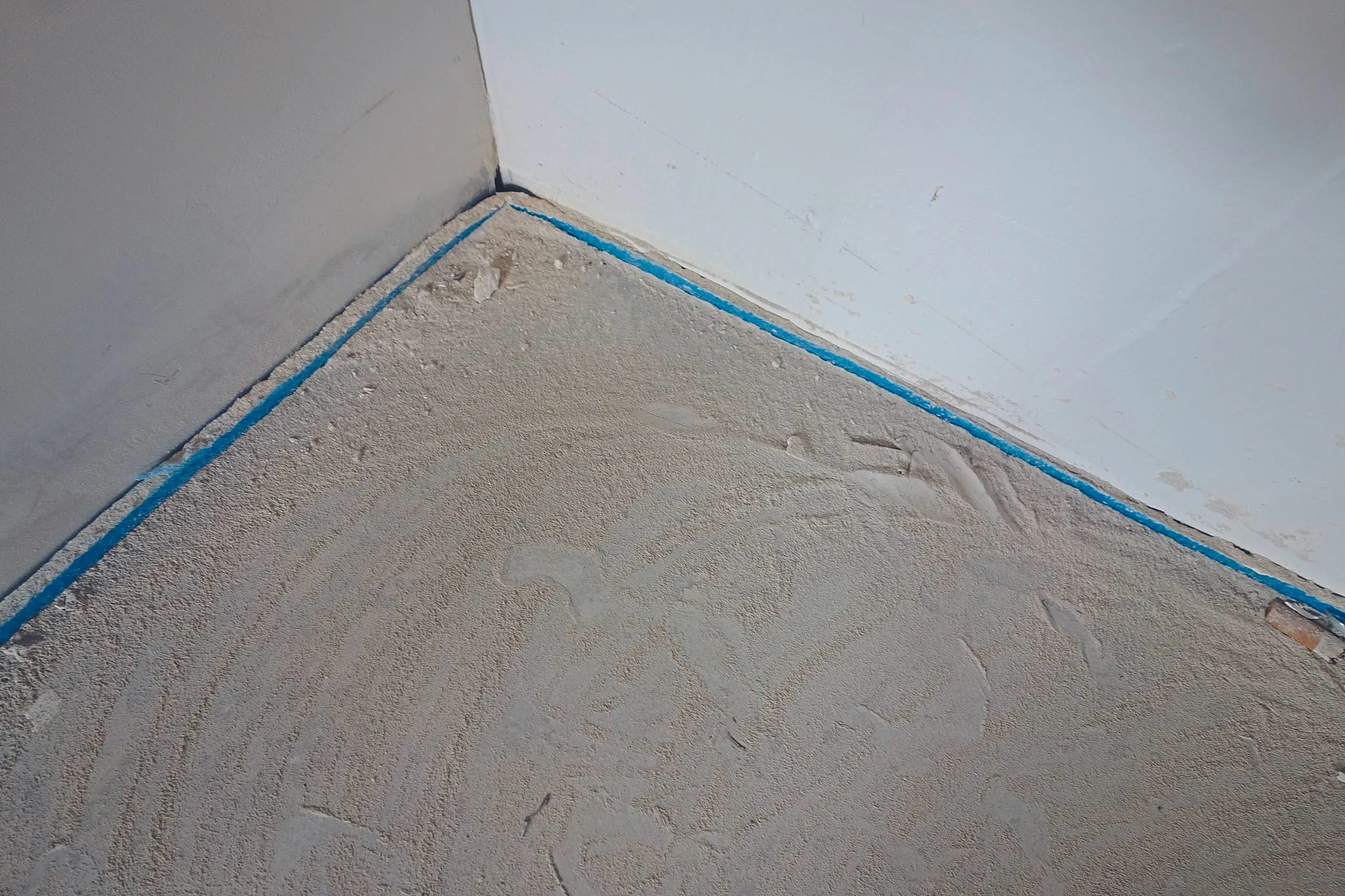 Sinterschicht auf einem Calciumsulfatfließestrich.