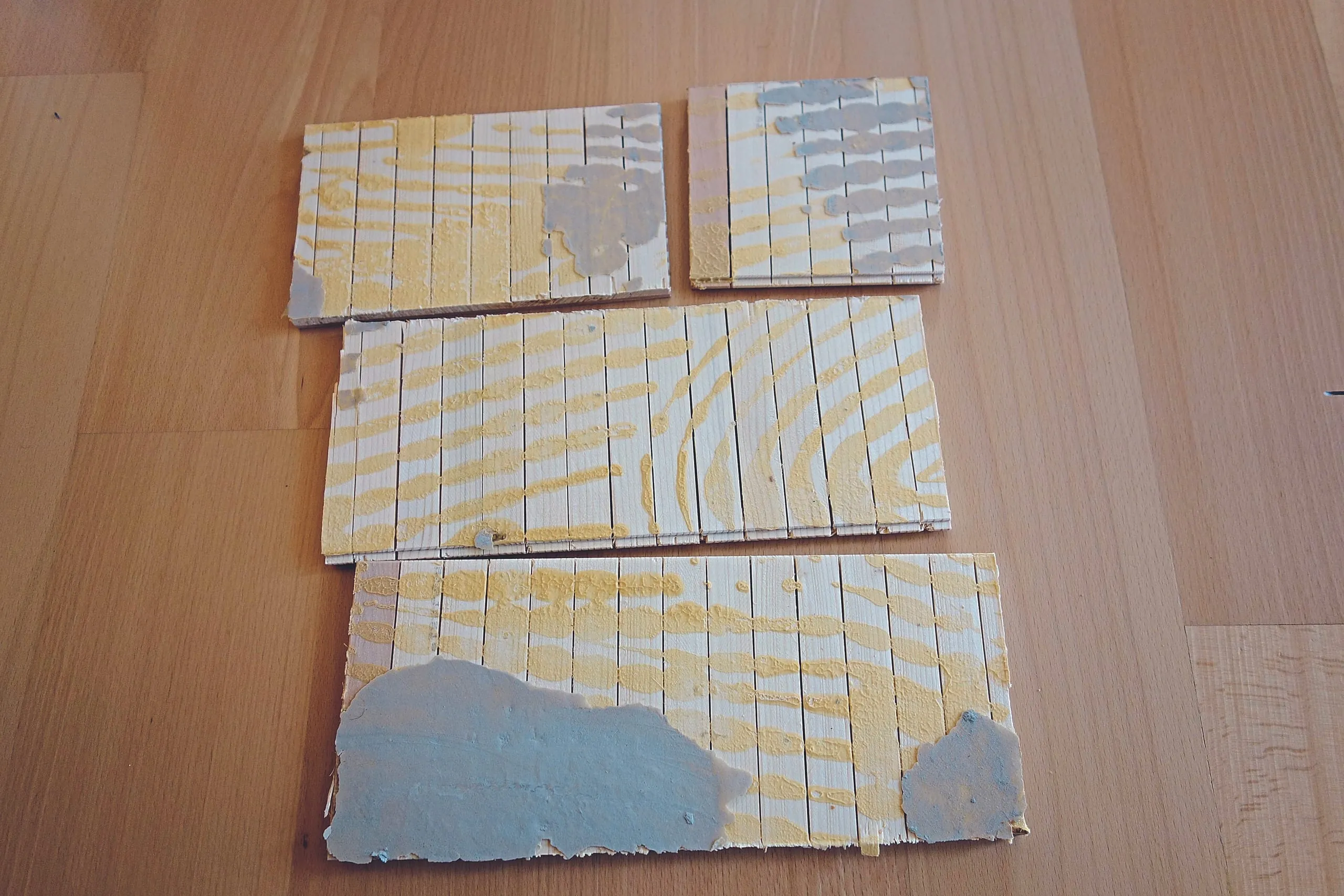 Abgeplatzter Parkettboden aufgrund mangelhafter Oberflächenfestigkeit.