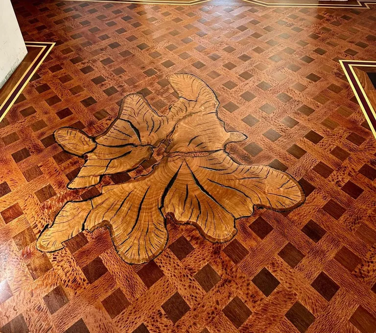 Parkettleger auf der ganzen Welt waren dazu aufgerufen, sich mit laufenden Projekten oder solchen, die nicht älter als 24 Monate waren, zu bewerben. Einzige Bedingung: Mindestens ein Magic Oil Produkt des Parkettspezialisten Pallmann musste Verwendung finden. Insgesamt gingen bis zum Ende der Bewerbungsfrist am 30. April mehr als sechzig Bewerbungen aus zwölf Ländern ein. Mit der Einreichung eines Projektes wurden die Handwerker automatisch Teil ihres Länderteams. Um sich für das Finale zu qualifizieren, musste ein Länderteam aus mindestens drei Projekten bestehen. Auf diese Weise zählten am Ende elf Länder mit ihren Projekten zu den Finalisten. Die Kriterien der internationalen Expertenjury waren unter anderem handwerklicher Anspruch, Raumgeometrie oder auch Nachhaltigkeit. Letztlich konnte Portugal die Fachjury mit vier überdurchschnittlichen Parkettprojekten am meisten überzeugen. Ein Highlight aus Portugal ist das Projekt von Fino Oficio: Neben der Einarbeitung einer Eukalyptuswurzel erforderte auch das Schleifen höchste Handwerkskunst, da verschiedene Hölzer verwendet wurden, heißt es dazu von Pallmann.