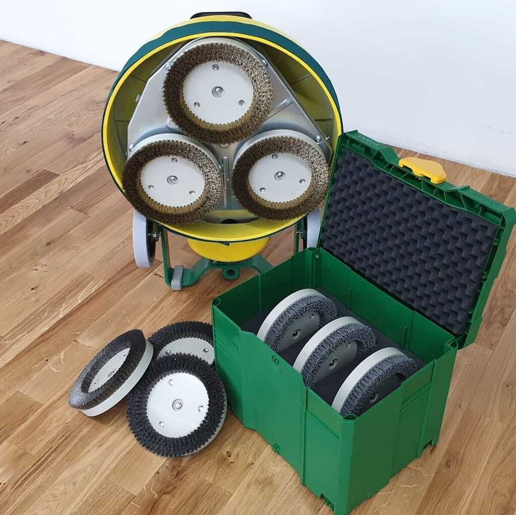 Beim Bürsten von Parkett kommt in der Regel eine Drahtbürste zum Einsatz. Dabei sind harte Edelstahlbürsten gerade bei der am meisten eingesetzten Eiche unbedingt empfehlenswert. Eiche und Metallabrieb können zu Fleckenbildungen führen, da der Gerbsäuregehalt des Holzes derartige Reaktionen begünstigt. Werden Weichhölzer, die zum großen Teil durch einen ausgeprägten Früh- und Spätholzunterschied gekennzeichnet sind, gebürstet, dann entsteht durch die Bearbeitung ein holztypisches Hoch-tief-Relief, weil das weiche Frühholz mehr herausgearbeitet wird als das harte Spätholz.
