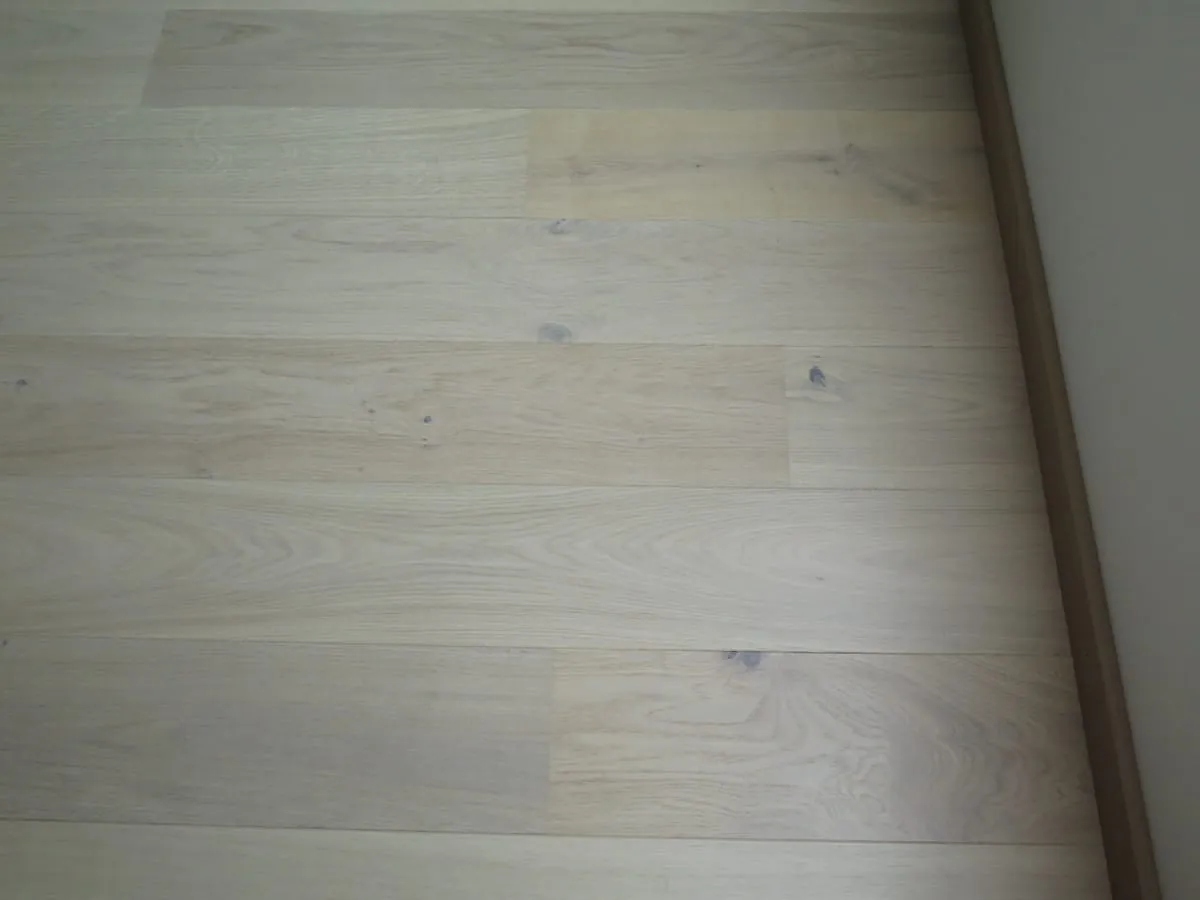 Die große Bodenfläche in der Ausstellung wurde etwa drei Jahre vor dem K undenbesuch verlegt und weist verschiedene, auch größere fest verwachsene Äst e auf. Dazu liegt die Oberfläche geölt und nicht versiegelt vor. Eine Bürstung zuvor erfolgte nicht, das heißt, die Dielenfertigstellung erfolgte während der Parkettherstellung durch Glattschleifen und Ölen.