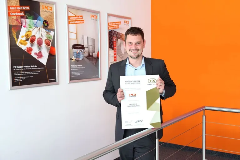 Von der Jury des "Plus X Award" wurde die Marke PCI mit dem Titel "Deutsche Traditionsmarke" ausgezeichnet. Manuel Rez, Leiter Marketing Management PCI Gruppe, freut sich über die Auszeichnung. - © PCI