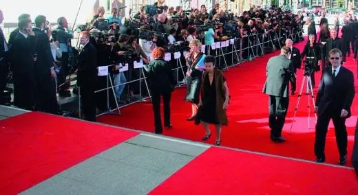 Der rote Teppich, eine spezielle Feinveloursentwicklung, wurde vor dem Palais am Funkturm ausgelegt und sorgte dort für glamouröses Ambiente.