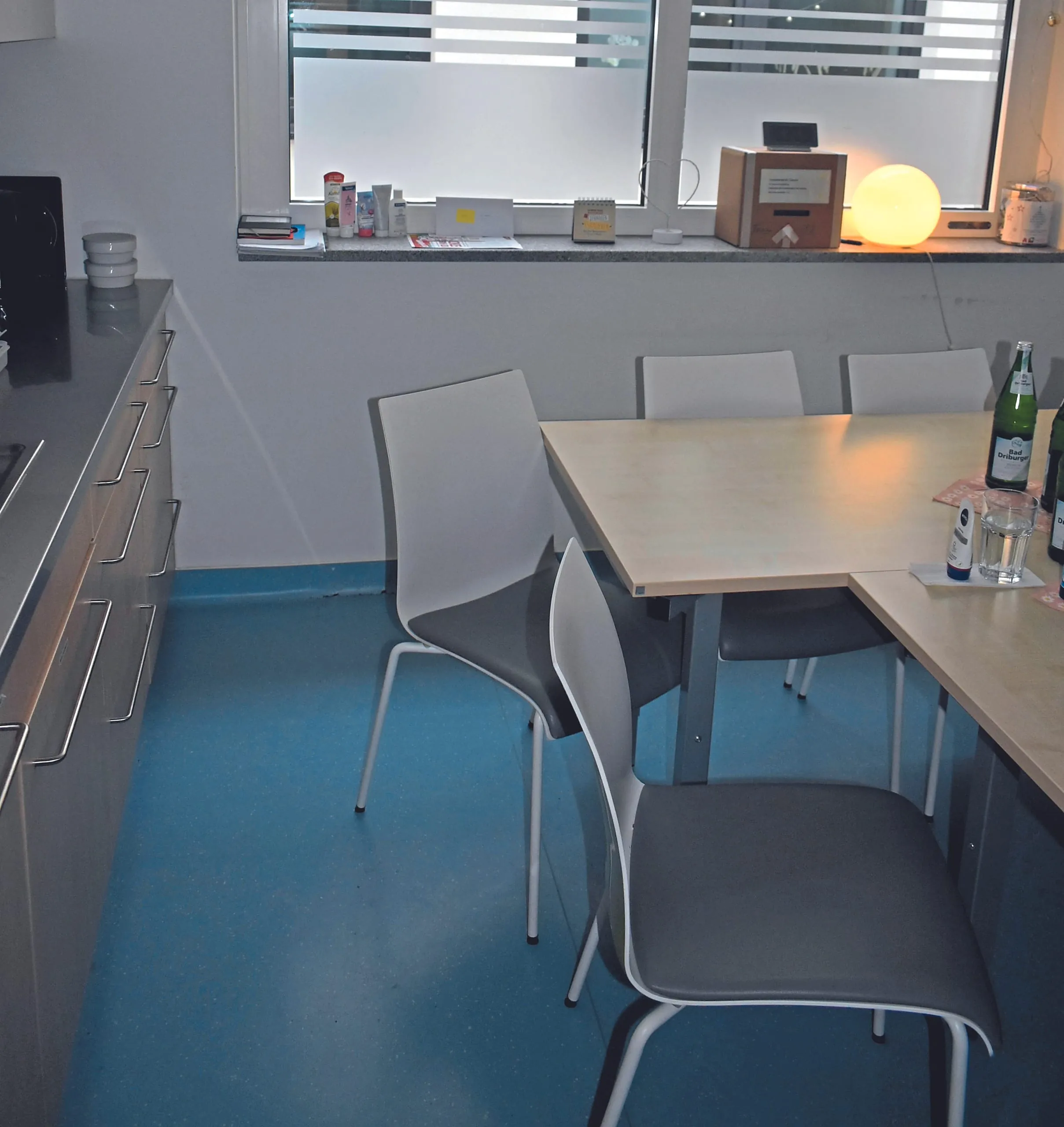 Blick in die Aufenthaltsräume mit Synthesekautschuk-Bodenbelag.