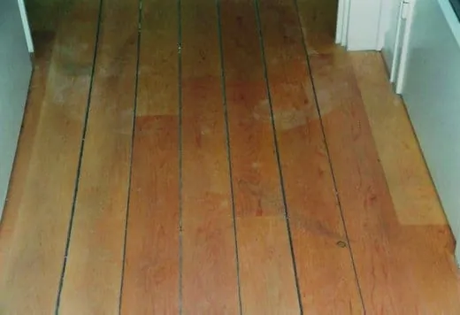 Beim Ortstermin war das Problem sofort offensichtlich. Der erste Versuch, die Türen der seit Fertigstellung vor drei Monaten unbewohnten Erdgeschosswohnung zu öffnen, scheiterte und erst nach kräftigem Drücken gelangte man in den Flurbereich. Der massive, naturgeölte Ahorndielenboden hatte sich dort erheblich aufgewölbt und glich beim Begehen eher einem Schwingrasen als einem fest arretiertem Fußboden. In einem seitlichen Arbeitszimmer war sogar ein Buckel von ca. 15 Zentimeter entstanden.