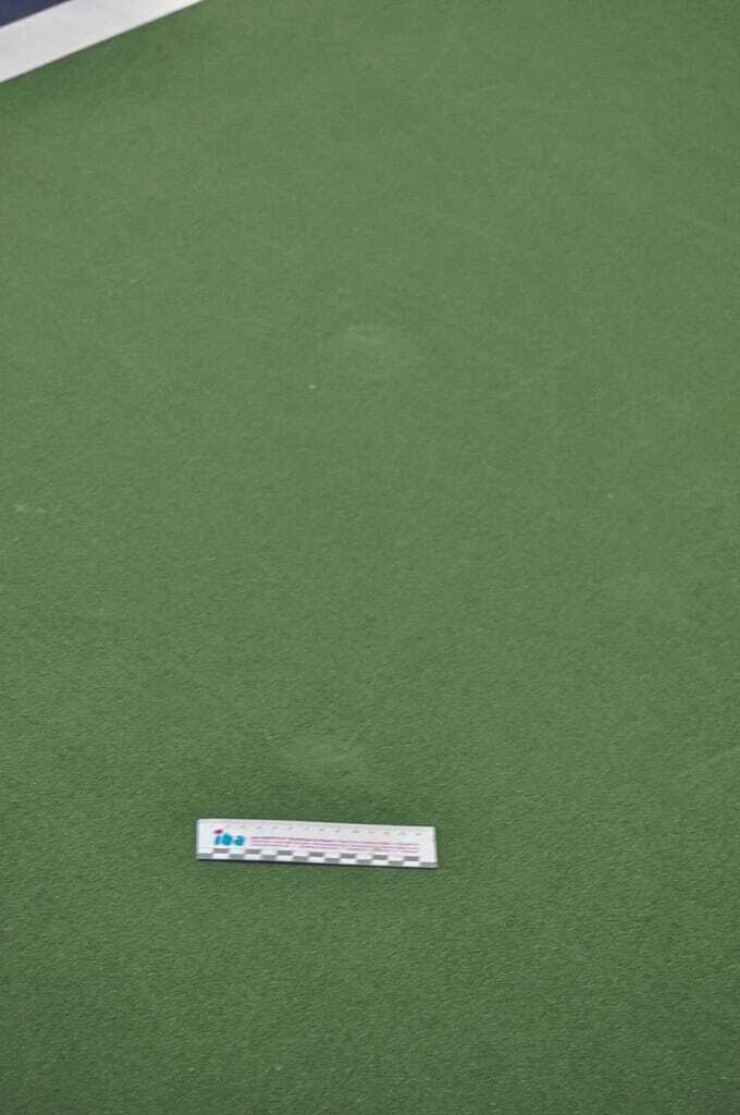 - Zwischen Spielfeld 1, 2 und 3 war in der grünen Umrandung ein Abrieb zu erkennen und kreisrunde bis ovale Fehlstellen.