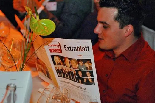 Pünktlich um 22 Uhr konnten die Gäste im druckfrischen roomy-Extrablatt die Höhepunkte des ersten Veranstaltungstages nachlesen. Und dafür, dass der Gesprächsstoff über das Zukunftsforum 2008 so schnell nicht ausgeht, sorgte zum Finale am zweiten Veranstaltungstag Erfolgstrainer Hermann Scherer. Seine hintersinnige, humorvolle und dabei hoch motivierende Performance riss das Publikum am Ende zu echten Begeisterungsstürmen hin.