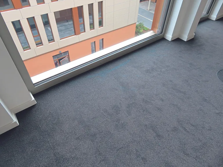 Nach Beendigung eines Bauvorhabens erfolgte wie üblich die Bauschlussreinigung. Als die Büroflächen an den Mieter übergeben werden sollten, stellte man fest, dass der Teppichboden vor den bodentiefen Fensterfronten Farbveränderungen aufweist.