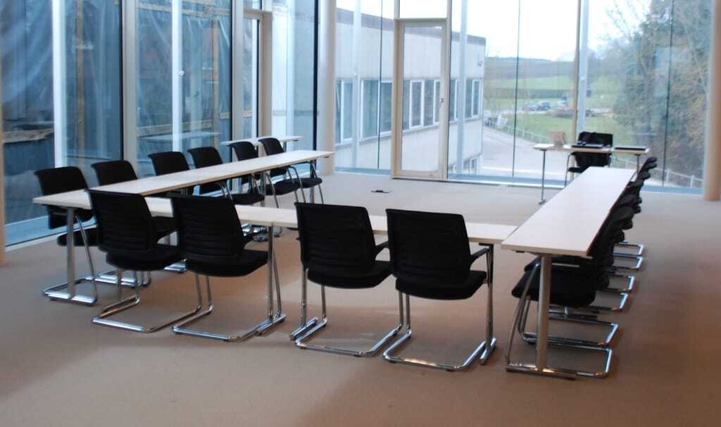 Für den Neubau einer Verwaltung wurden im Obergeschoss auf 400 m2 im Forum mehrere Räume für Besprechungen, Schulungen und Seminare geplant. Als Oberboden wurde ein heller textiler Bodenbelag verlegt. Die Räumlichkeiten sind so konzipiert, dass entweder 10–15 Personen oder 100–120 Personen in den jeweiligen Büros oder Schulungsräumen unterrichtet und geschult werden können. Die Büroausstattung wurde von zwei verschiedenen Herstellern bereitgestellt bzw. geliefert. Zum einen die Schränke und Tische, zum anderen die Stühle (Freischwinger mit Stuhlgleitern).