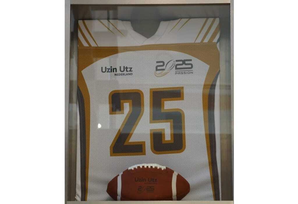 Die sportlichen Ziele von "Passion 2025" symbolisiert ein Football-Trikot. Dieses hängt bei Uzin Nederland in Haaksbergen. - © Jan Rieken