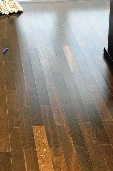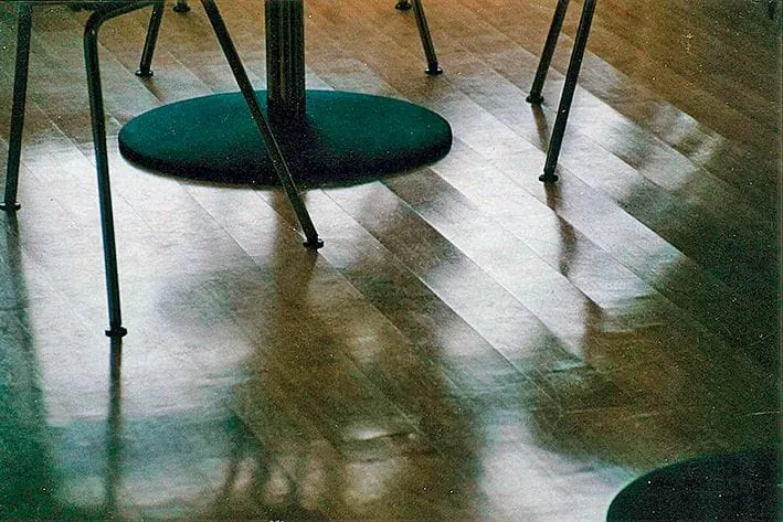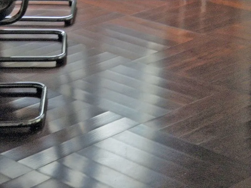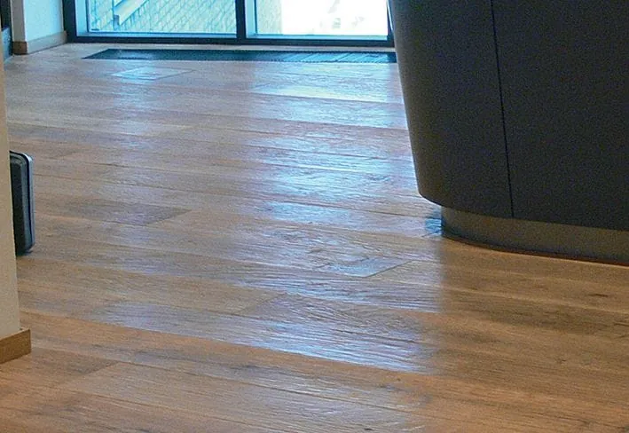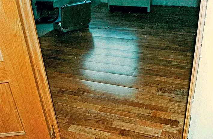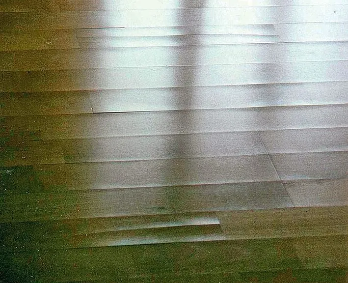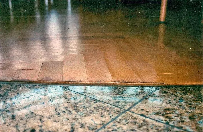 5 Hier musste es sehr schnell gehen. Die Spachtelmasse war noch nicht ganz trocken, da musste das Parkett schon verlegt werden. Besser wäre es gewesen, der Verleger hätte Bedenken geltend gemacht, anstatt dem Architekten nachzugeben.