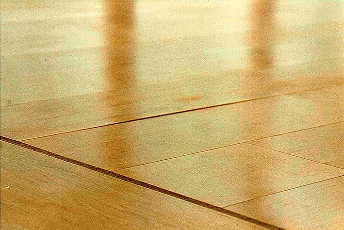 2 Die zulässigen Verformungen am verlegten Boden haben nichts mit der Herstellnorm zu tun. Hier ein sehr hoch geheizter Zweischichtboden, der sich unter Fugenausbildung erheblich verformt, aber dessen Decklamellen trotz fast 30 °C Oberflächentemperatur halten.