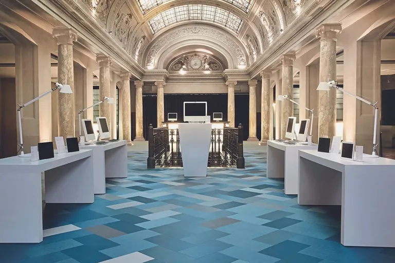 Wenn das mal kein Hinkucker ist! Die farblich aufeinander abgestimmten Fliesen wurden auf einer rechteckigen Fläche von 112 m2 (8 m x 14 m) verlegt. In Zusammenarbeit mit Tarkett verraten wir Ihnen die Zutaten und die Verlegeanleitung für dieses Verlegemuster, genannt „Gradience“, aus der Tarkett-Kollektion iD Inspiration 55-70.