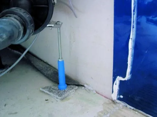 Auch fehlte hier eine ordnungsgemäße Verbundabdichtung, d.h. es waren keine Abdichtungsbänder im Übergangsbereich zwischen Fußboden- und Wandkonstruktion eingebaut worden.