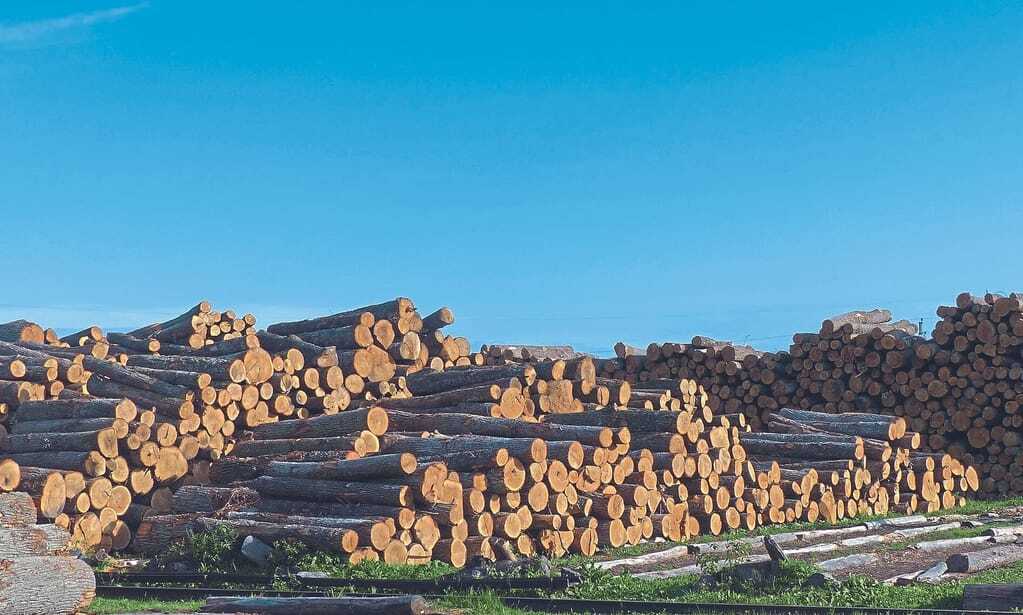 Die zum Teil noch in Rinde befindlichen Stammabschnitte der Rundhölzer lagern vor ihrer Weiterverarbeitung auf sogenannten Rundholzplätzen. - © bwd